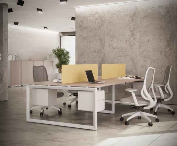 The Eco Series offers a modern and contemporary solution for office workstations and desks, combining a unique design that enhances both aesthetics and functionality. Its specific form promotes an open, airy atmosphere, making it perfect for focused individual work as well as dynamic collaborative environments.